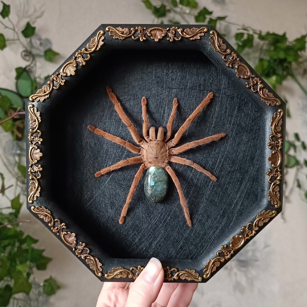 It is 100% handmade work that includes preserved spider, frame, painting. This frame is unique and sold as a single copy.